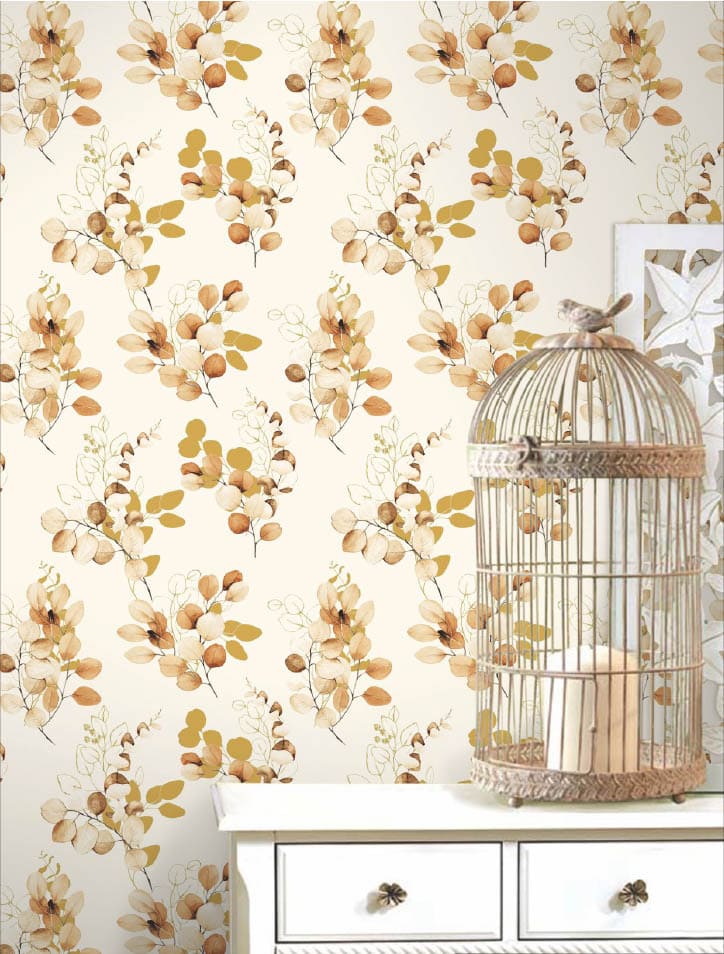 Luxury Beige & Golden Floral Botanical Wallpaper Roll