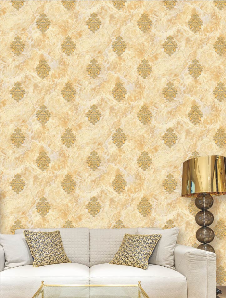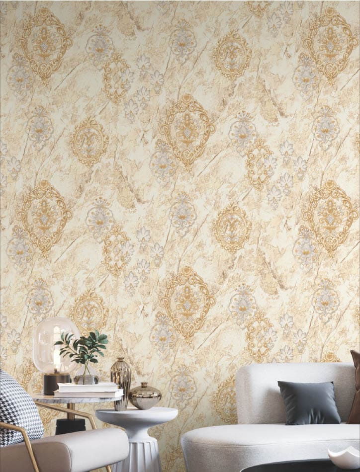 Luxury Beige Marble Wallpaper with Golden Motif Pattern