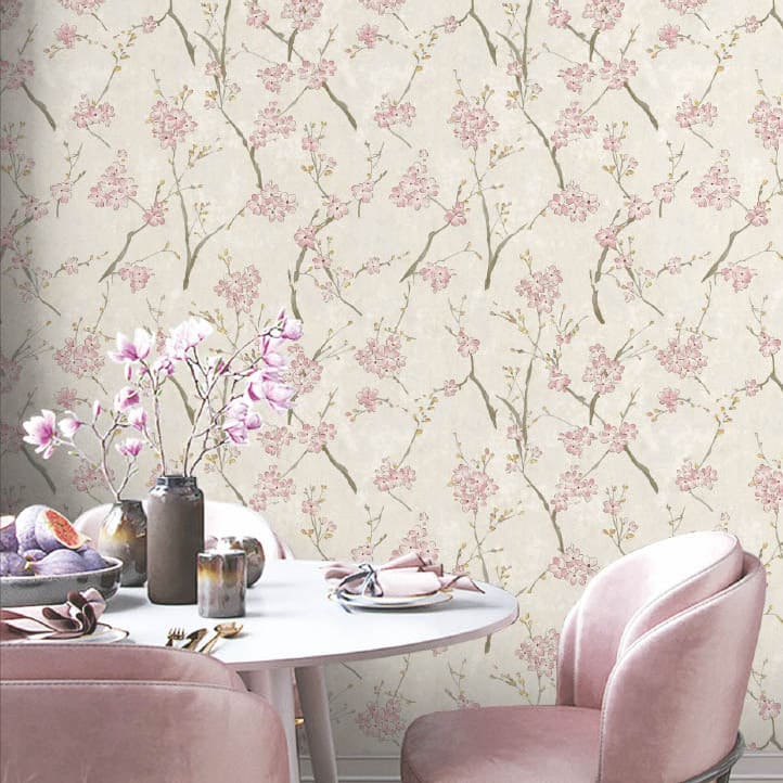 Transform your walls with the Elegant Pink Floral Branch Wallpaper, designed to add charm and freshness to your interiors. Featuring delicate pink blossoms on graceful branches against a soft cream background, this wallpaper creates a warm and inviting atmosphere—ideal for bedrooms, living rooms, dining areas, or offices.
