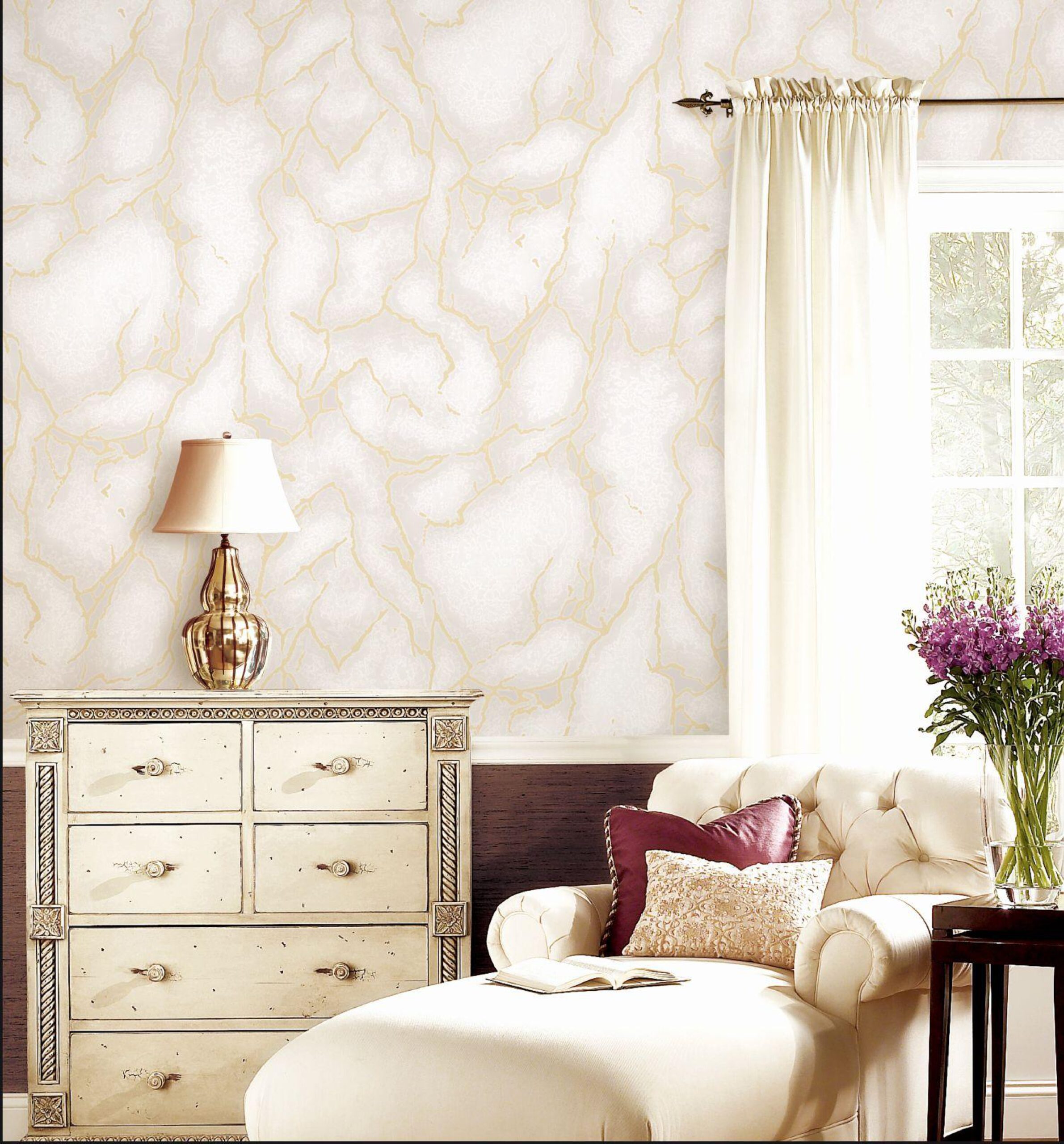Elegant White & Beige Marble Effect Wallpaper