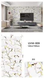 Bring elegance and sophistication into your home with the UVM-009 Luxury 3D Marble Sheet with Gold and Bronze Veins. This premium self-adhesive wall covering is designed to give any space a high-end marble look without the cost or hassle of real stone. Crafted from durable waterproof PVC vinyl, it is heat-resistant, scratch-proof, and easy to maintain, making it perfect for kitchens, bathrooms, living rooms, offices, and more. With its large size (120cm × 300cm) and simple peel-and-stick application, you can transform your walls, furniture, or surfaces instantly with a touch of luxury.