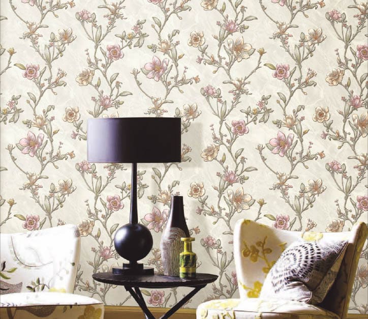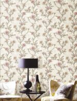 Beige wallpaper with pink & brown floral design |