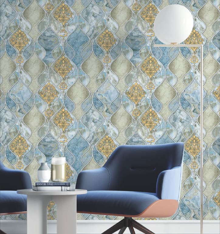 Give your walls a touch of modern sophistication with this Luxury Blue & Golden Abstract Geometric Wallpaper Roll. The elegant blend of soft blue tones with golden ornamental patterns adds a unique charm, making any wall stand out as a statement piece. Perfect for homes, offices, cafés, and boutiques, this wallpaper balances contemporary style with a luxurious appeal.