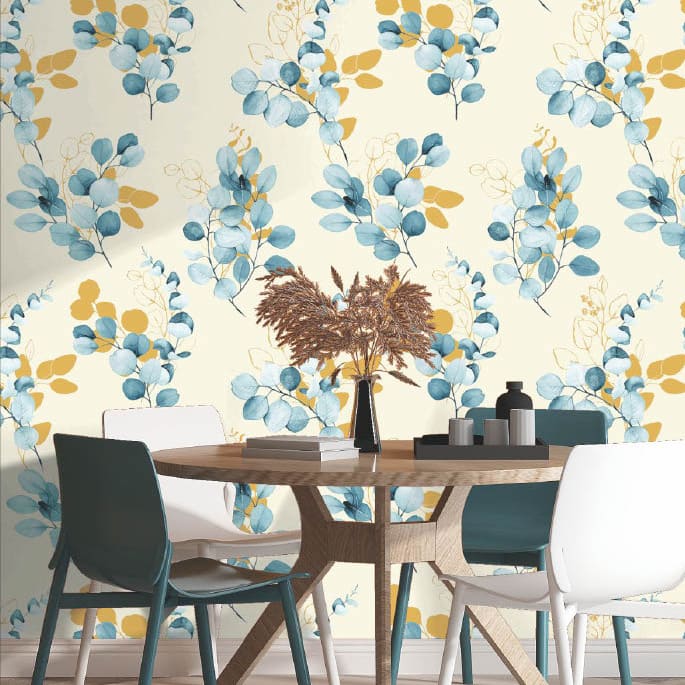 Add freshness and elegance to your interiors with the Luxury Blue & Golden Floral Botanical Wallpaper Roll. Featuring delicate blue floral bouquets highlighted with golden accents on a soft beige background, this wallpaper creates a refreshing, artistic, and premium vibe for any wall.