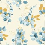 Blue & Golden Floral Botanical Pattern on Beige Background |