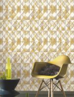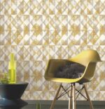 Upgrade your space with this Golden & White Geometric Diamond Wallpaper—a versatile choice for modern and contemporary home décor.