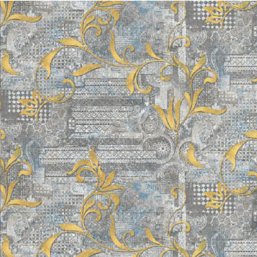 Grey & Blue Background with Golden Vine Floral Pattern |