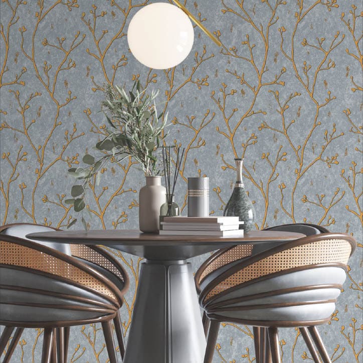 Bring a touch of modern elegance to your interiors with the Luxury Grey & Golden Branch Wallpaper Roll. Featuring graceful golden vine branches with budding leaves over a rich grey background, this wallpaper creates a sophisticated and stylish wall décor statement. Its blend of bold grey tones with golden detailing makes it ideal for luxury homes, modern apartments, and professional office spaces.