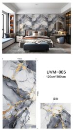 Bring sophistication and elegance into your home or office with the UVM-005 Luxury Marble Sheet. Featuring a stunning fusion of grey and white marble tones highlighted by bold golden veins, this decorative sheet instantly uplifts any space with a premium, modern aesthetic. Whether used as a bedroom backdrop, a living room accent wall, or a stylish kitchen surface, the UVM-005 gives you the luxury of marble at a fraction of the cost.