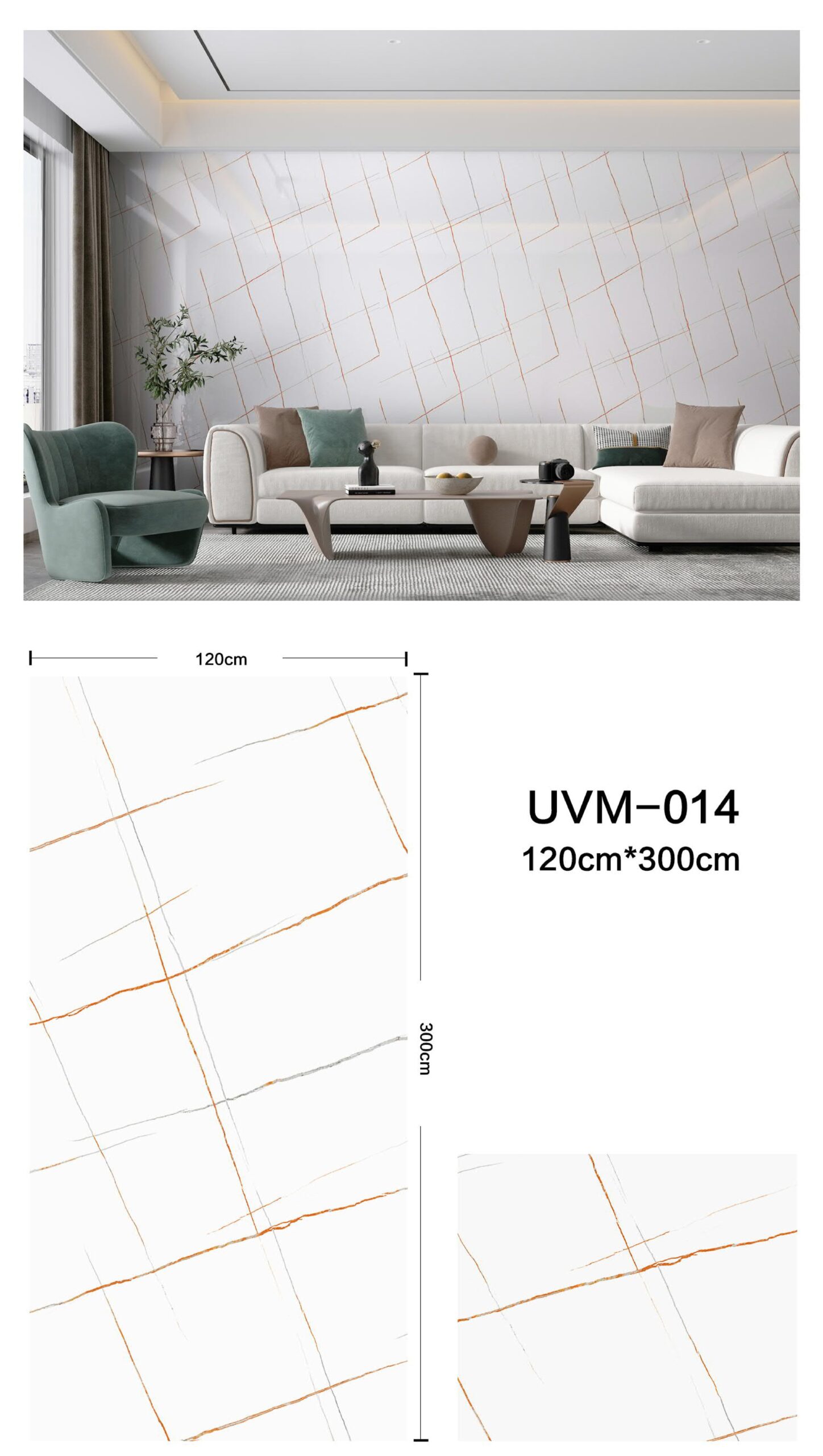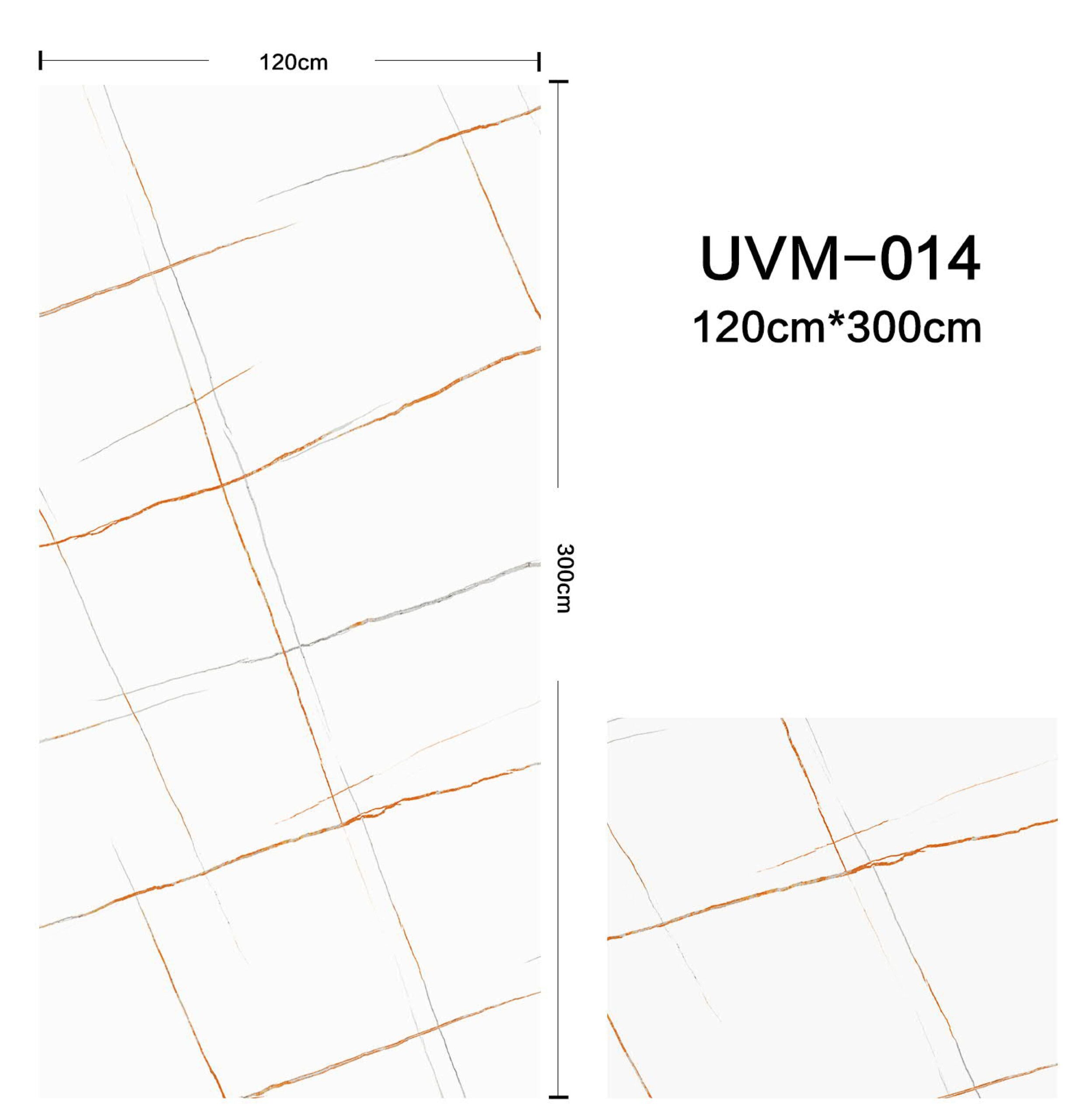 Measuring 120cm × 300cm (39 sq. ft.), the UVM-014 sheet covers a wide area, making it perfect for kitchen backsplashes, bathroom walls, countertops, cabinets, or office décor. Unlike real marble slabs, it is lightweight, budget-friendly, and easy to maintain with a simple wipe-down.